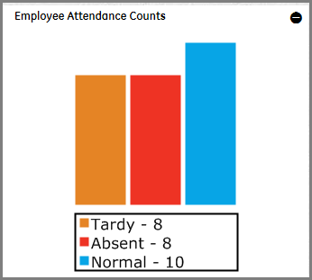 The Employee Attendance Counts card displays a graph indicating the percentage of a supervisor's employees with Tardy, Absent and Normal attendance occurrences. Click on the Choose a Pay Group Instance drop down menu to select a pay group instance, or select All Current or All Future.